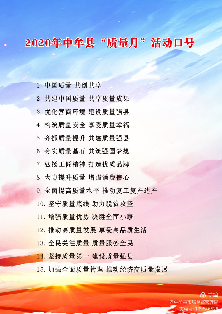 把開展“質量月”活動與促進企業全面復工復產達產、打通產業循環,促進保障和改善民生,助力決戰脫貧攻堅和全面建成小康社會結合起來。推動企業切實加強全面質量管理,提升質量競爭力,更好應對疫情帶來的沖擊挑戰。堅持以人民為中心,著力解決疫情防控和復工復產達產方面群眾關心、社會關切的質量問題,讓群眾感受到“質量月”活動的成效。