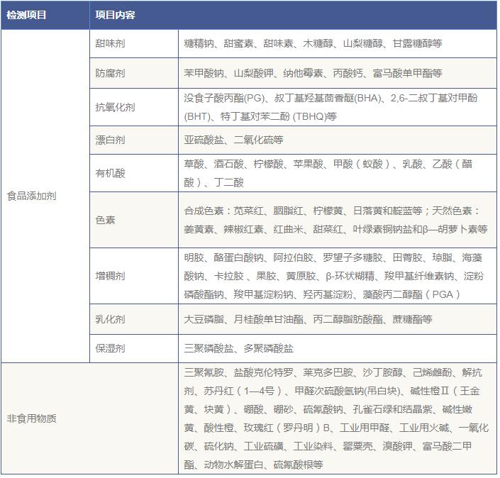 食品添加劑檢測項目